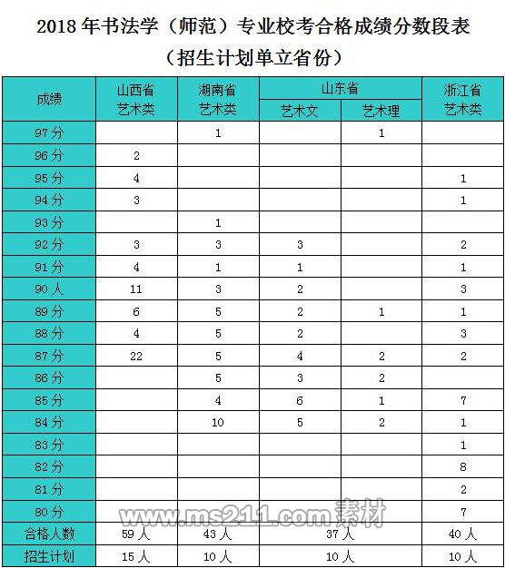 專業(yè)??己细瘢幕煽?jī)達(dá)到考生所在省書(shū)法學(xué)專業(yè)相關(guān)藝術(shù)類本科同批次最低錄取分?jǐn)?shù)線的前提下,原則上按綜合成績(jī)從高分到低分擇優(yōu)錄取。綜合成績(jī)=考生文化成績(jī)÷高考文化總分×100×50%+專業(yè)??汲煽?jī)×50%。當(dāng)綜合成績(jī)相同時(shí),按專業(yè)??汲煽?jī)、文化總分、語(yǔ)文、外語(yǔ)、數(shù)學(xué)分?jǐn)?shù)由高至低依次排序錄取。