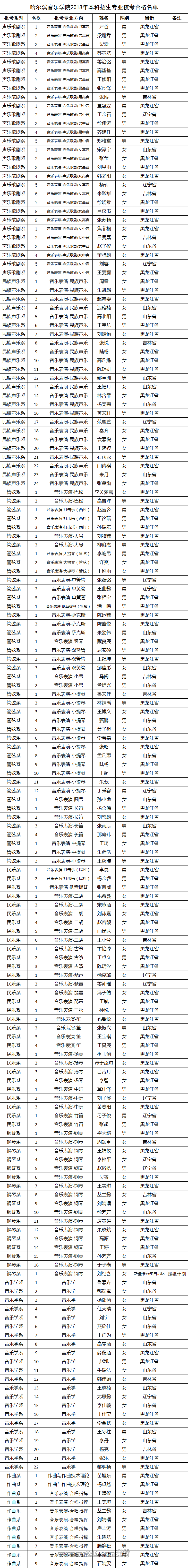 關(guān)于發(fā)布哈爾濱音樂(lè)學(xué)院2018年本科招生專(zhuān)業(yè)校考合格名單的通知