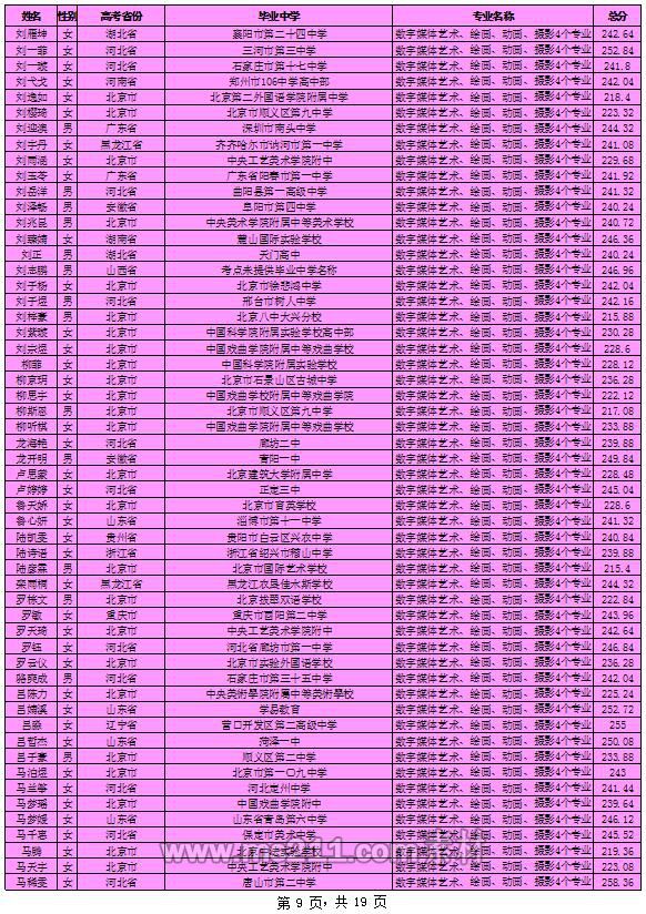 北京印刷學(xué)院2018年藝術(shù)類本科專業(yè)考試合格考生名單