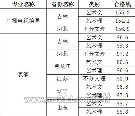 2019年東北電力大學(xué)藝術(shù)類專業(yè)??己细穹?jǐn)?shù)線