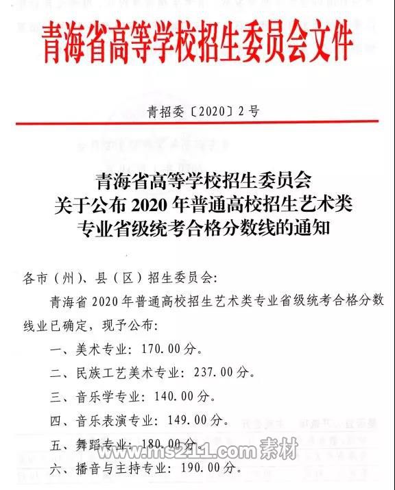 經(jīng)研究,我市2020年普通高等學(xué)校招生藝術(shù)類專業(yè)考試成績最低控制分?jǐn)?shù)線劃定如下,現(xiàn)予以公布。