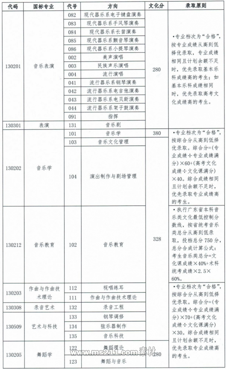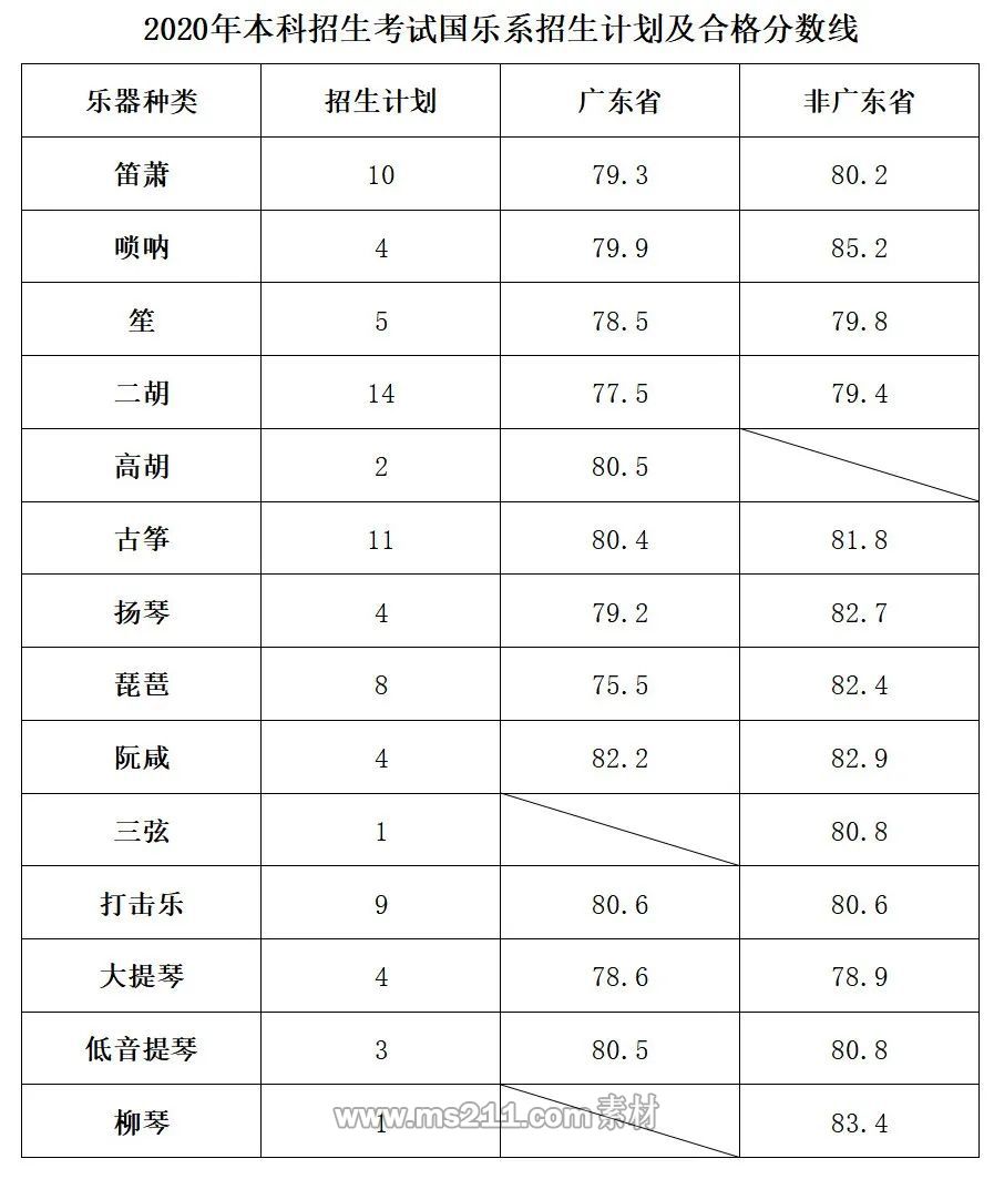 2020年星海音樂學院本科藝術錄取分數線