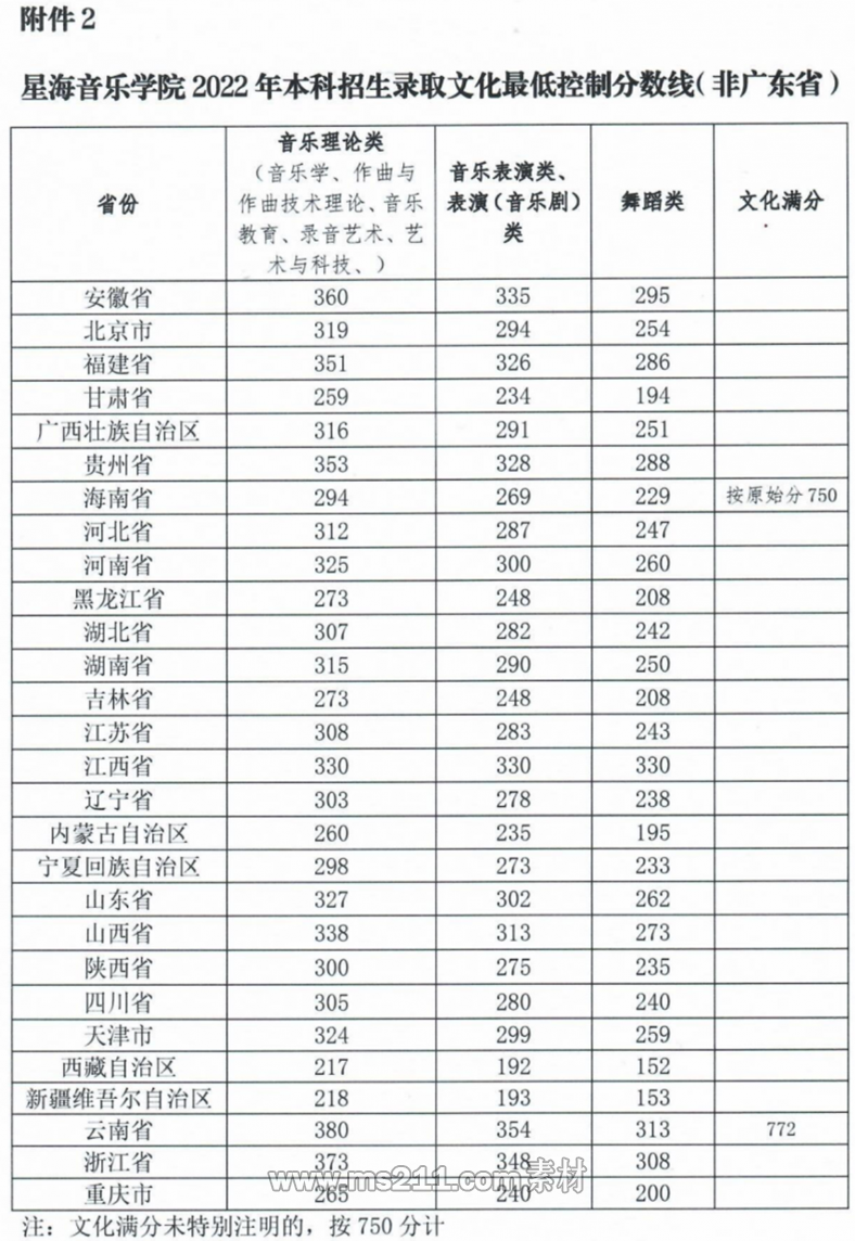 2022年星海音樂學院本科藝術錄取分數線