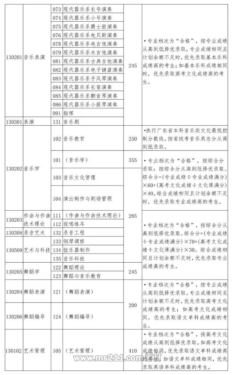 2021年星海音樂學院本科藝術錄取分數線