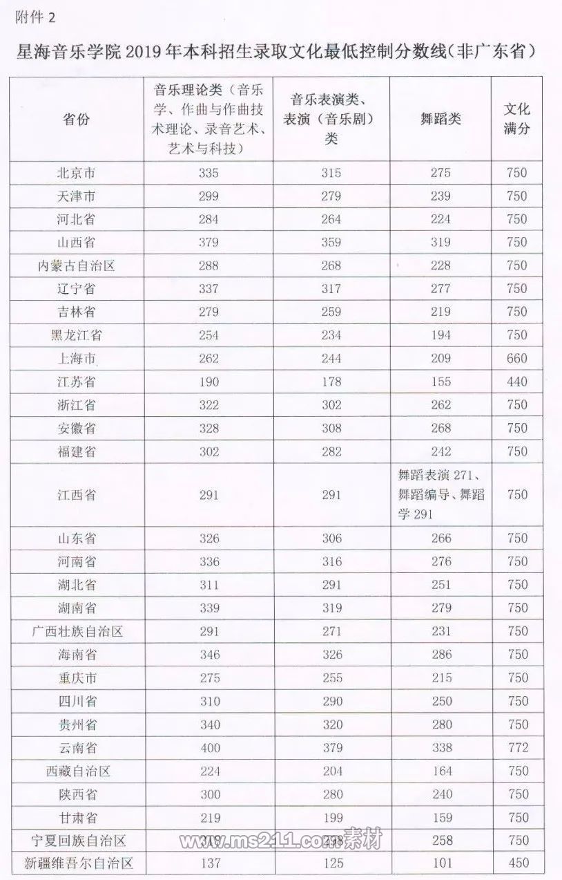 2019年星海音樂學院本科藝術錄取分數線