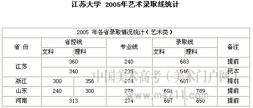 2005年江蘇大學(xué)美術(shù)高考錄取分?jǐn)?shù)線