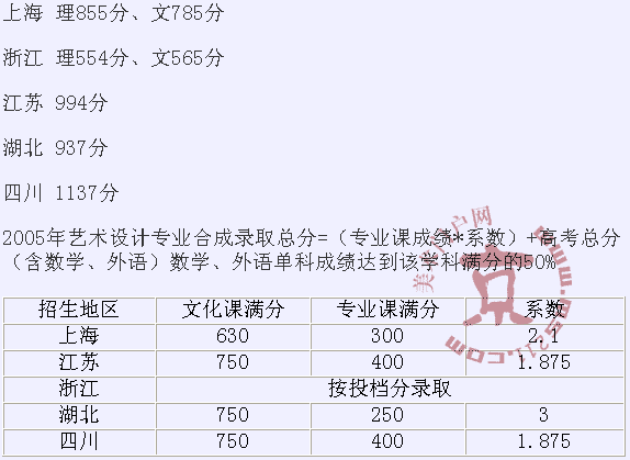 2005年上海交通大學(xué)美術(shù)高考錄取分?jǐn)?shù)線