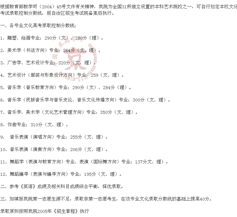 2005年廣西藝術(shù)學(xué)院美術(shù)高考錄取分?jǐn)?shù)線