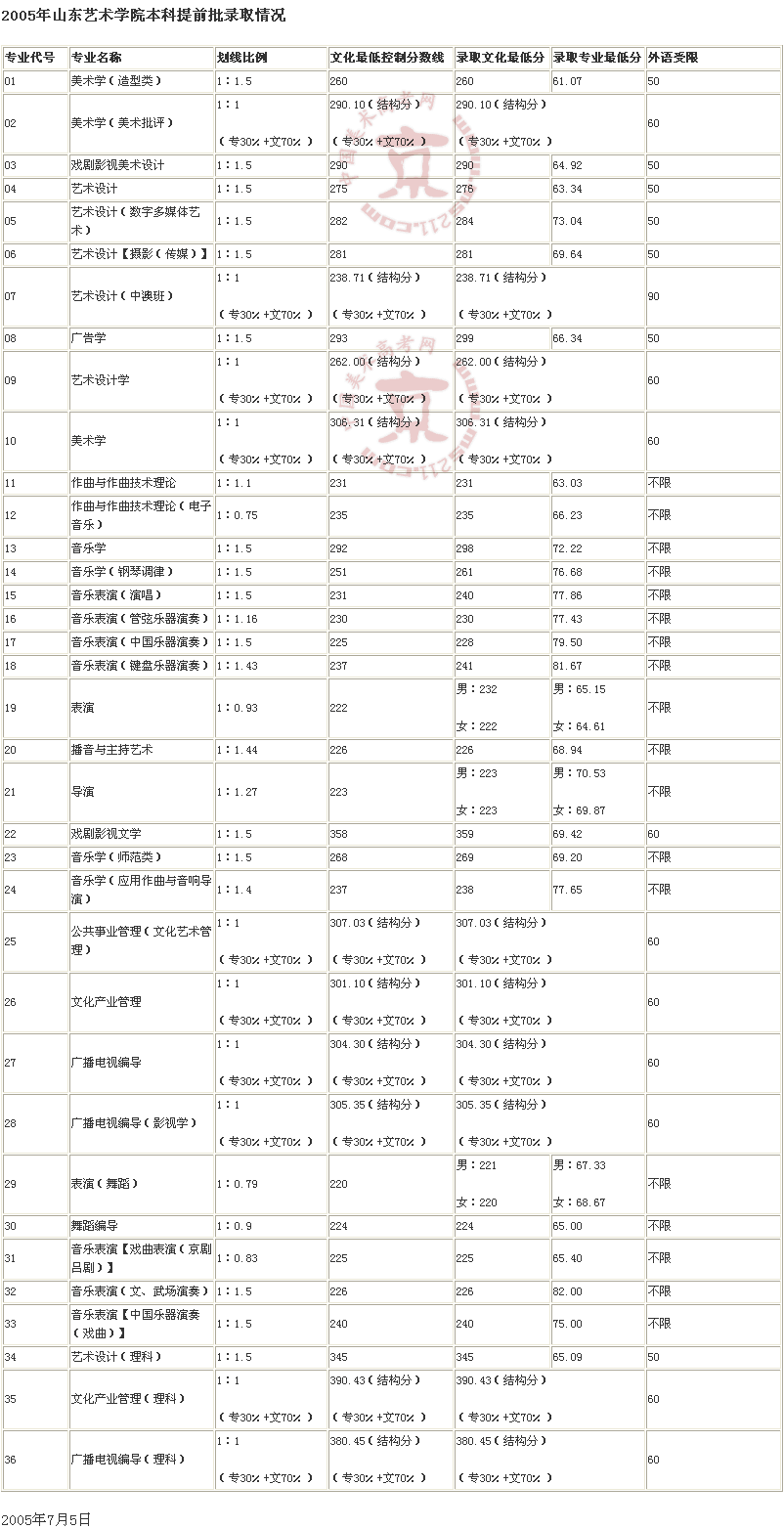 2005年山東藝術(shù)學(xué)院美術(shù)高考錄取分?jǐn)?shù)線