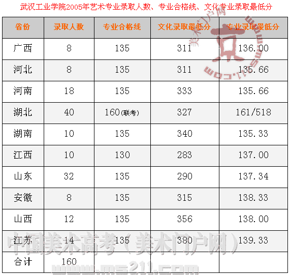 2005年武漢工業(yè)學(xué)院美術(shù)高考錄取分?jǐn)?shù)線