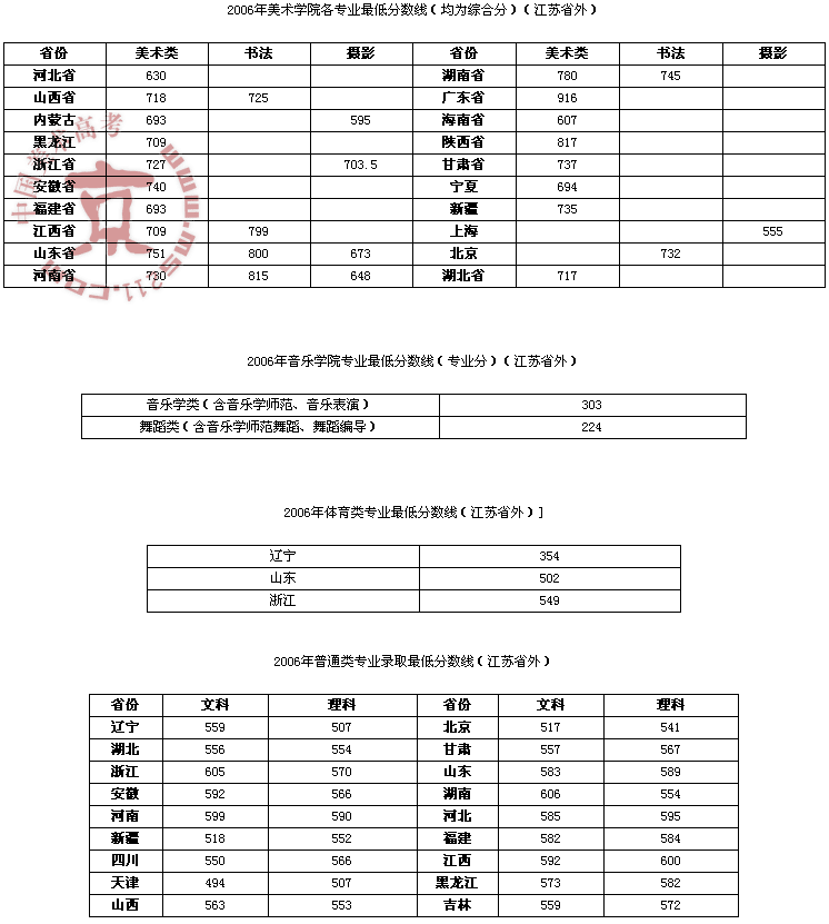 2006年南京師范大學(xué)美術(shù)高考錄取分?jǐn)?shù)線