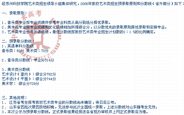 2006年蘇州科技學(xué)院美術(shù)高考錄取分?jǐn)?shù)線