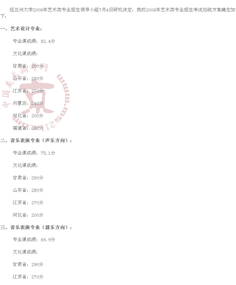 2006年蘭州大學(xué)美術(shù)高考錄取分?jǐn)?shù)線(xiàn)