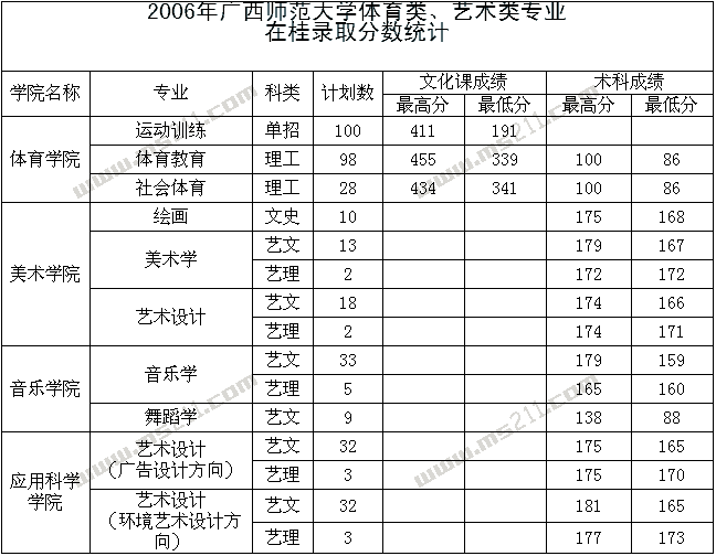 2006年廣西師范大學(xué)美術(shù)高考錄取分?jǐn)?shù)線