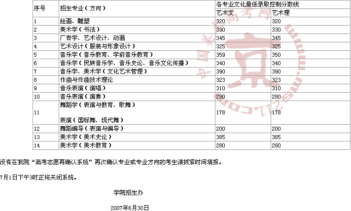 2007年廣西藝術(shù)學(xué)院美術(shù)高考錄取分?jǐn)?shù)線