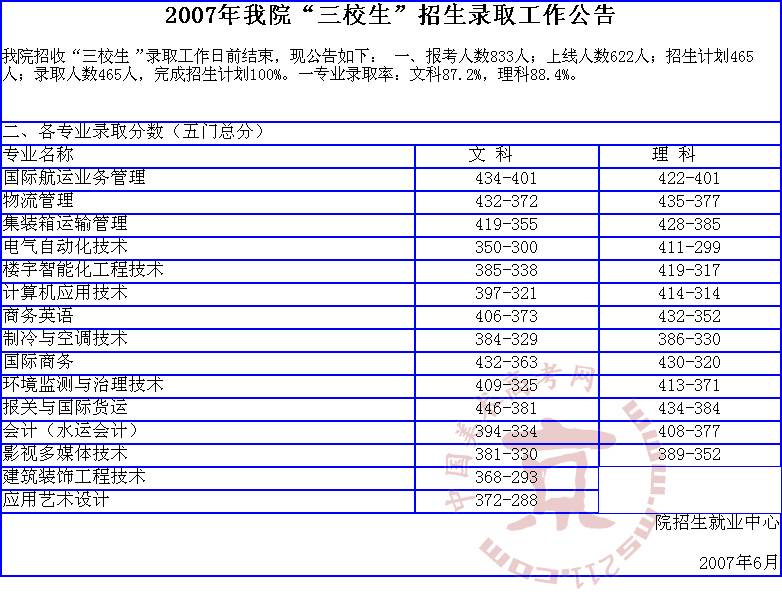 2007年上海海事職業(yè)技術(shù)學院美術(shù)高考錄取分數(shù)線