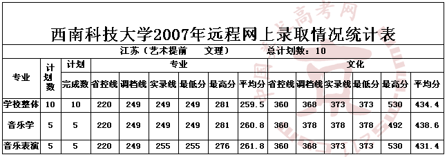 2007年西南科技大學(xué)美術(shù)高考錄取分?jǐn)?shù)線