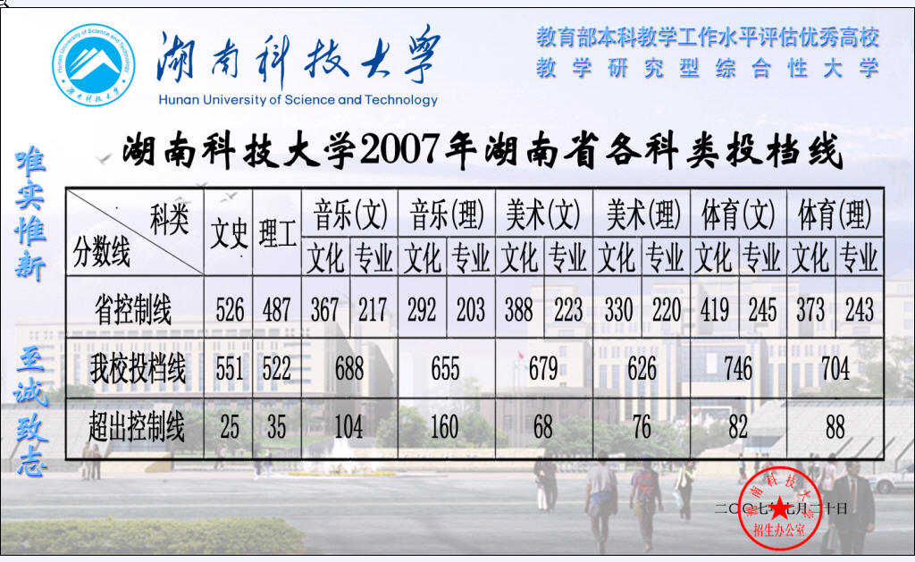 時間:2007-7-20 來源:湖南科技大學(xué)招生辦公室 錄入:ms211中國美術(shù)高考網(wǎng)
