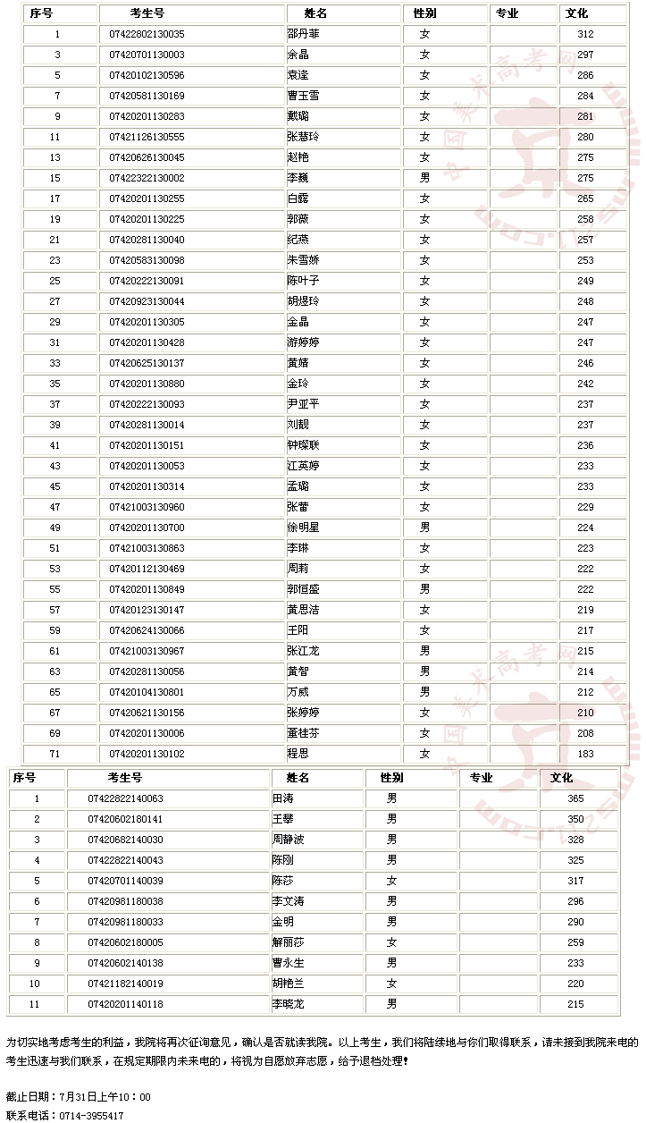 2007年湖北師范學(xué)院文理學(xué)院美術(shù)高考錄取分?jǐn)?shù)線