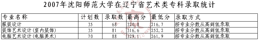 2007年沈陽(yáng)師范大學(xué)美術(shù)高考錄取分?jǐn)?shù)線(xiàn)