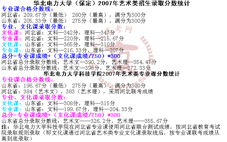 2007年華北電力大學(保定)美術高考錄取分數(shù)線