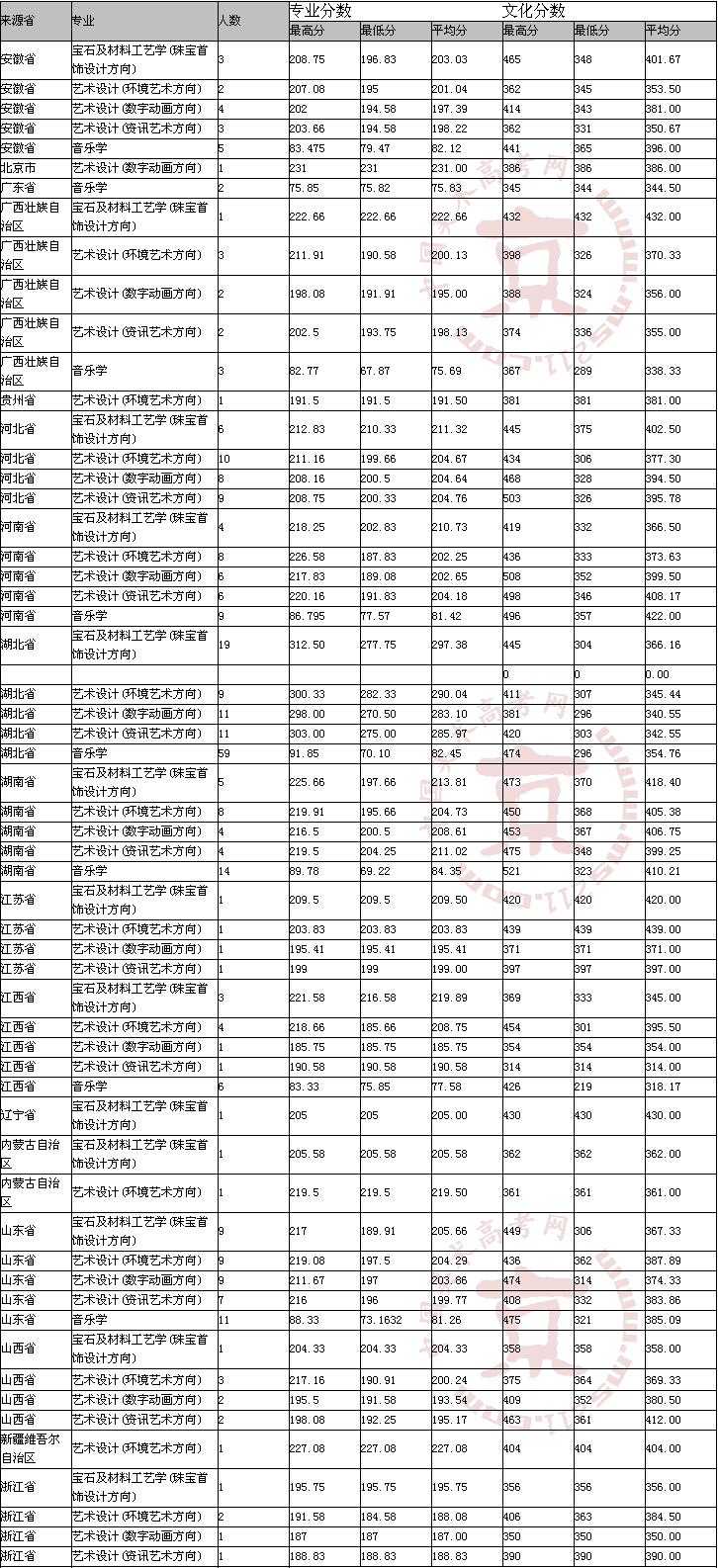 2007年中國地質(zhì)大學(xué)(武漢)美術(shù)高考錄取分?jǐn)?shù)線