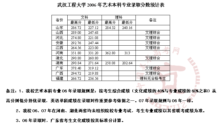 2007年武漢工程大學美術(shù)高考錄取分數(shù)線