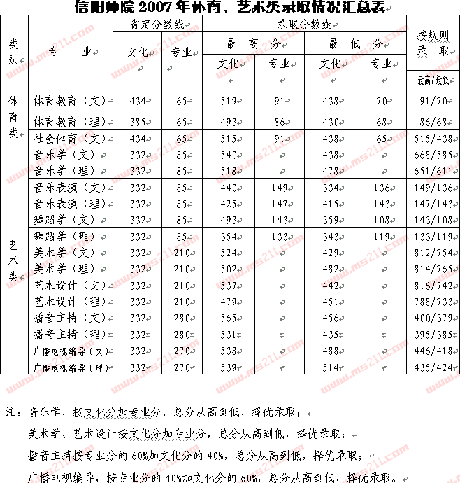 2007年信陽師范學院美術(shù)高考錄取分數(shù)線