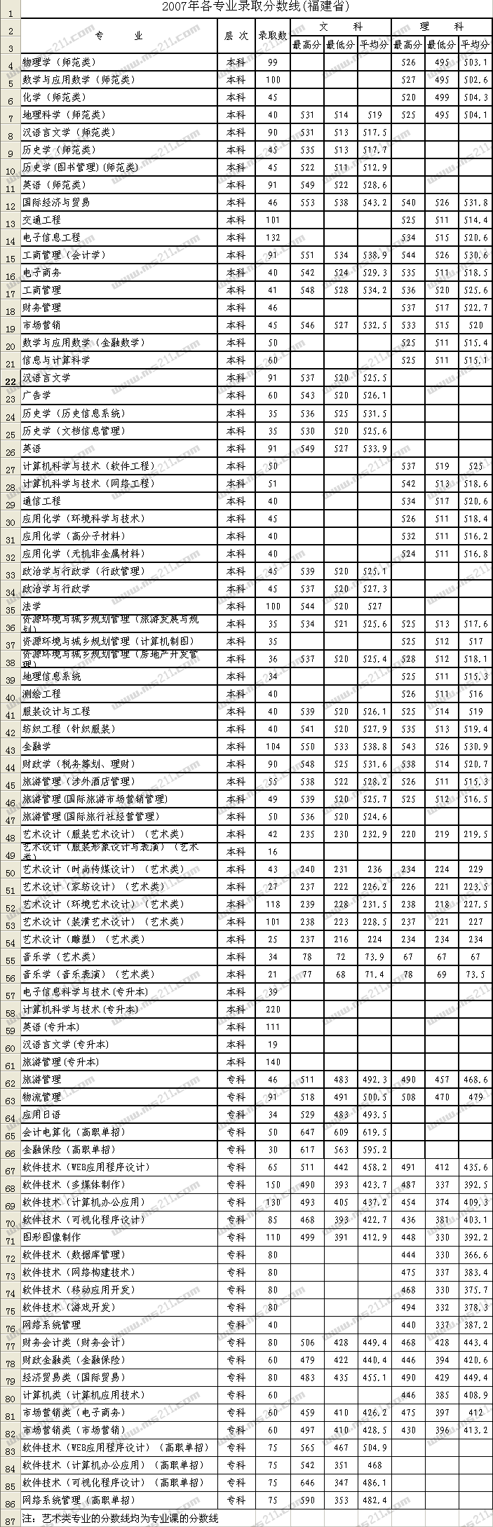 2007年閩江學(xué)院美術(shù)高考錄取分?jǐn)?shù)線