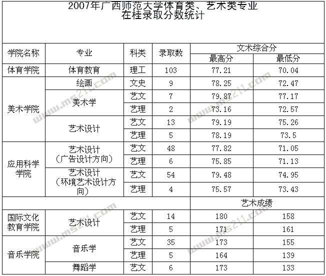 2007年廣西師范大學(xué)美術(shù)高考錄取分?jǐn)?shù)線
