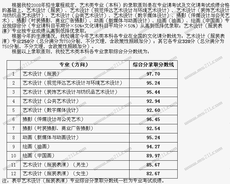 2008年北京服裝學(xué)院美術(shù)高考錄取分?jǐn)?shù)線