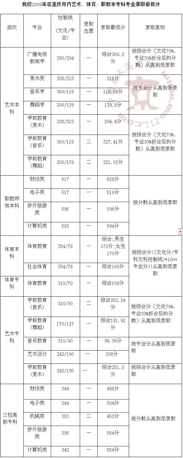 2008年重慶文理學(xué)院美術(shù)高考錄取分數(shù)線