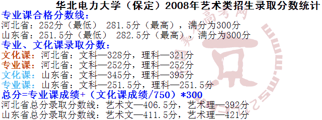 2008年華北電力大學(xué)(保定)美術(shù)高考錄取分?jǐn)?shù)線