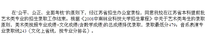 2008年中南林業(yè)科技大學(xué)美術(shù)高考錄取分?jǐn)?shù)線