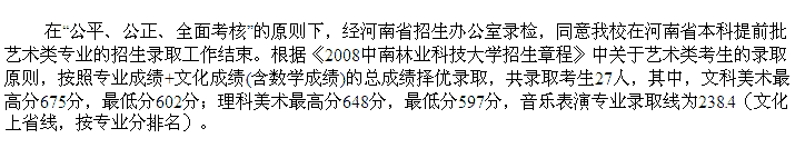 2008年中南林業(yè)科技大學(xué)美術(shù)高考錄取分數(shù)線