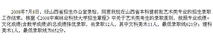 2008年中南林業(yè)科技大學(xué)美術(shù)高考錄取分?jǐn)?shù)線