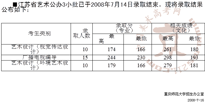 時間:2008-7-16 來源:重慶師范大學招生辦 錄入:ms211中國美術高考網