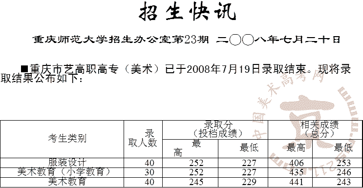 [圖文]2008年重慶師范大學重慶市藝高職高專(美術)錄取線
