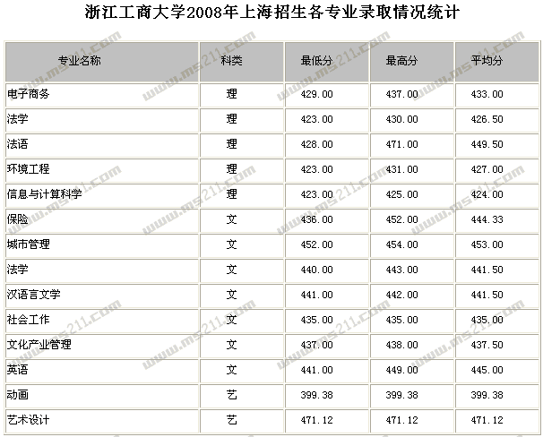 2008年浙江工商大學(xué)美術(shù)高考錄取分?jǐn)?shù)線