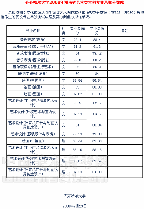 2008年齊齊哈爾大學(xué)美術(shù)高考錄取分數(shù)線