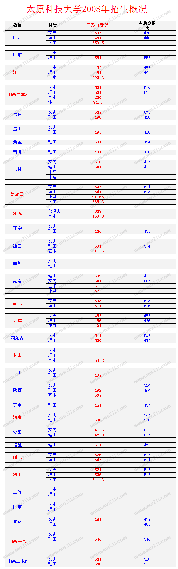2008年太原科技大學(xué)美術(shù)高考錄取分?jǐn)?shù)線