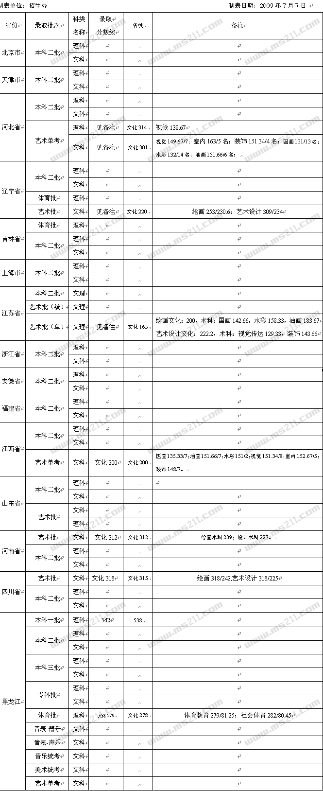 2009年佳木斯大學(xué)美術(shù)高考錄取分?jǐn)?shù)線(xiàn)