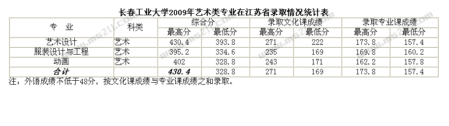 2009年長(zhǎng)春工業(yè)大學(xué)美術(shù)高考錄取分?jǐn)?shù)線