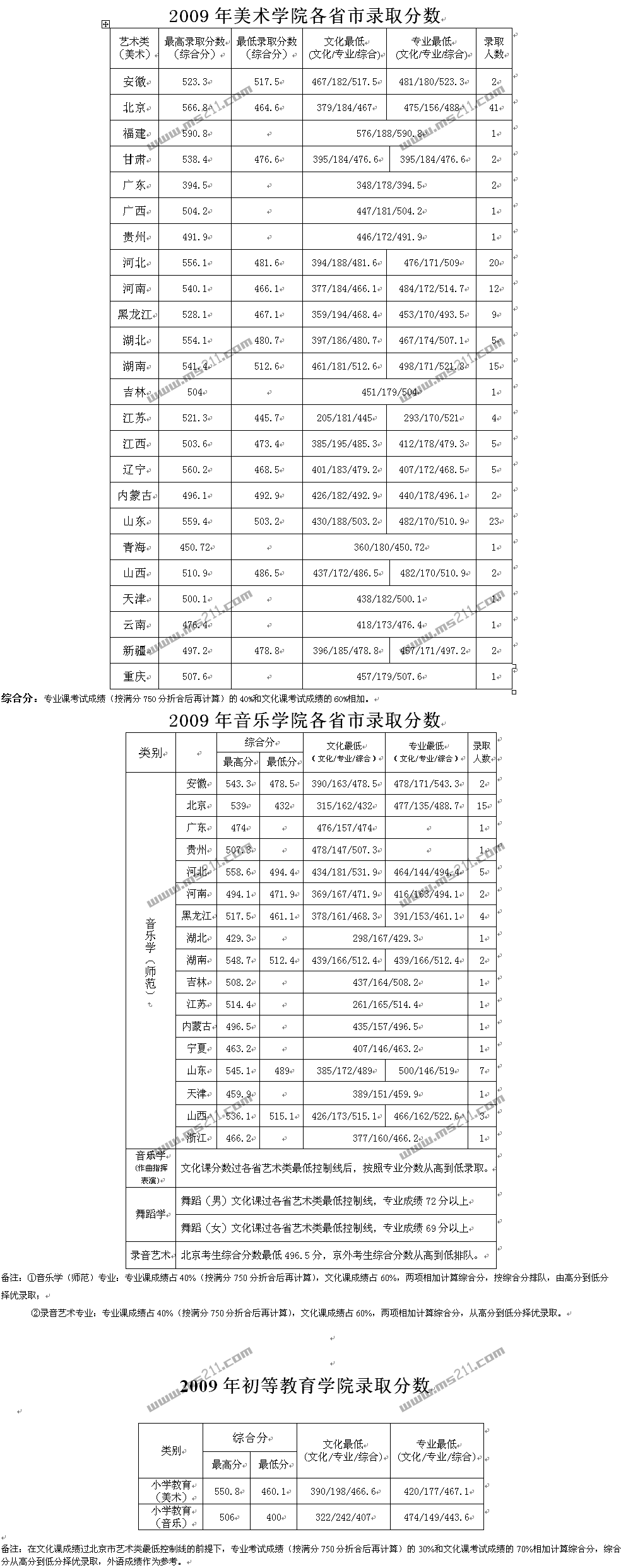2009年首都師范大學(xué)美術(shù)高考錄取分?jǐn)?shù)線