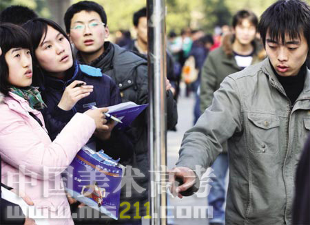 據(jù)市招辦主任劉鳴介紹,根據(jù)省招生考試院的安排,天津美術(shù)學(xué)院在省內(nèi)的報(bào)名時(shí)間是2月25日、26日,而該校的全國統(tǒng)一報(bào)名時(shí)間為2月24日和25日,因此前天就有外地學(xué)生趕到青島,市招辦臨時(shí)將報(bào)名時(shí)間提前一天。