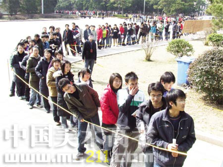 早報(bào)訊 昨天,天津美術(shù)學(xué)院在山東設(shè)立的惟一專業(yè)測試點(diǎn)正式開始現(xiàn)場報(bào)名,據(jù)估計(jì)今年山東省有近6000人報(bào)考天津美院,而該校今年在全國的招生計(jì)劃只有750人。今天天津美院繼續(xù)報(bào)名。