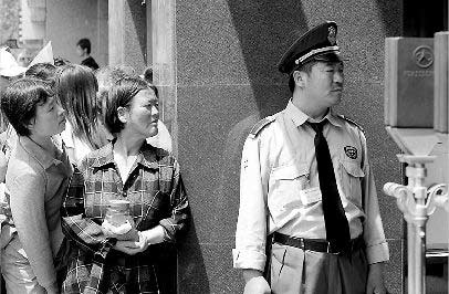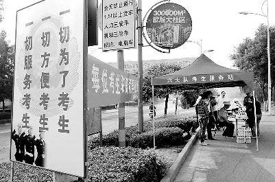 一位考生的媽媽帶了礦泉水和報紙,在十二中附近的樹蔭下坐下:“這是孩子人生中最關(guān)鍵的一次考試,我想在這里等,要在家等可能更焦急。”像這位母親一樣,很多家長選擇在考點門外等待。為保證考生有一個安靜的考試環(huán)境,在考點所在的街道兩端,交警都設(shè)立了警戒線以防止機動車輛進入?键c門口,還設(shè)置了標語牌“請勿鳴笛喧嘩”、“為了考生的安全,請您配合”的藍色告示牌。