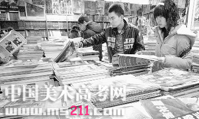 2月18日,兩名學(xué)生正在藝術(shù)書店里挑選美術(shù)專業(yè)高考(Q吧)復(fù)習(xí)書。近來,全國高校藝術(shù)類專業(yè)考試陸續(xù)展開,而隨著報考此類專業(yè)人數(shù)的不斷增多,相應(yīng)的考試專業(yè)用書也成為熱點,當(dāng)日省城大型圖書批發(fā)市場春節(jié)過后首日營業(yè),就有大量學(xué)生前來選購藝術(shù)專業(yè)圖書。