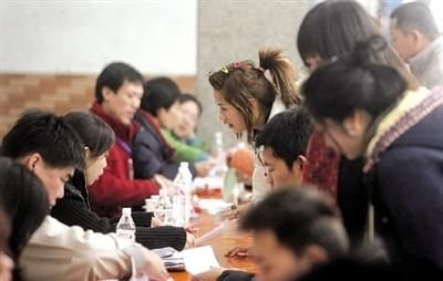考生在報(bào)名處認(rèn)真詢問(wèn)