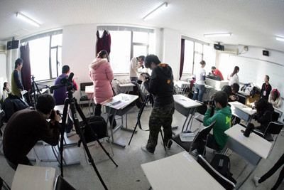 考生們都忙著做考前準(zhǔn)備